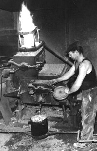 Castings would be 'fettled' - if necessary the 'pouring stem' and 'runners' would be removed by bandsaw first. The casting was then hand filed where needed and 'linished' with a mobile sand belt, which assured a good surface and properly trimmed edges where necessary.