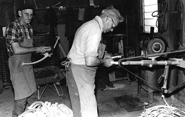 A frame was slipped over the pot, fitting firmly under the lip of the pot, or crucible, enabling two men to manipulate the pot. It was lifted off when hot enough and placed right under the pouring lip of the furnace. The furnace was then slowly tipped by turning the winding mechanism allowing the molten metal to stream accurately into the pot.
