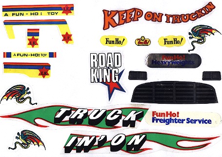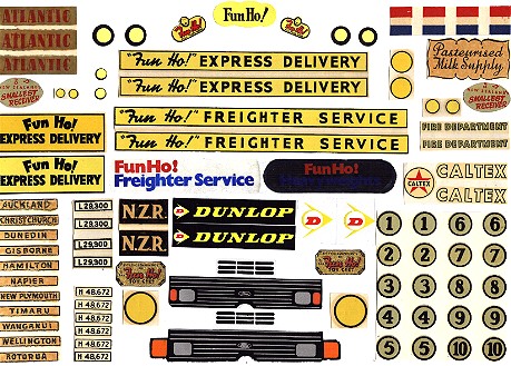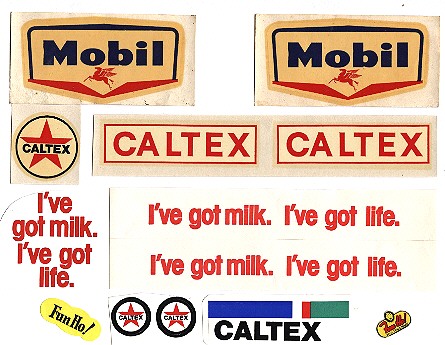A number of specially designed larger decals were made for the larger Fun Ho! Toys, tankers being a case in point. There were some happy arrangements made with some fuel suppliers like Atlantic, Mobil, and Caltex.