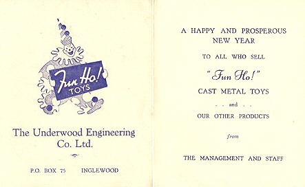 This was used in the 1940s in the earliest known book catalogue for Fun Ho!, and it was also used with Christmas and New Years cards of the same period.