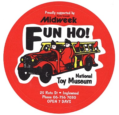 The number 105 Fire Engine was chosen as the logo for the Fun Ho! National Toy Museum when it changed hands in 1999, and was re-fitted and displayed at the new Rata Street premises in Inglewood.