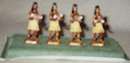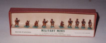 Sets of five and ten military figures Maori poi group, Maori war-party, and other figures, all NZ solids. Hand painted.