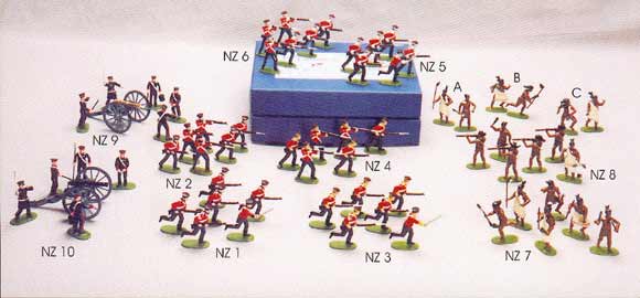 Ian and Allan Farley, brothers from a local family started making sets of solid lead figures in 1992. Beautifully made, their emphasis has always been on New Zealand themes. They make their own moulds, and the products are sold separately or in sets. New Zealand Land war figures, and N.Z.Army personnel are well represented, as well as a wide range of U.S.Civil war figures. For those who like something a little different, there are also a number of civilian folk to choose from.