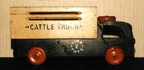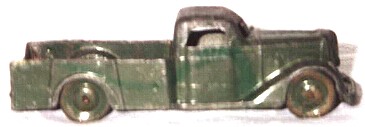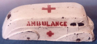 Die-cast lead toys and sundries. Tinplate wheels were extensively used, and the range of wheeled toys were of two or three different scales with wheels in the 19-25mm diameter range. Painted products included a number of camouflaged military vehicles