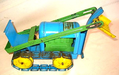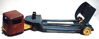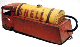 Their range of tinplate toys was quite extensive and variable, although they were not above using blanks of a special shape for more than one product; witness the standard cab tops and the gun turret of the tank, the ends of the telephone, and the wheels!