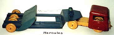It is clear there was a connection of some sort with Jomax during the 1960s, as Jomax toys appears to have a very complimentary range of trucks. Many of these were clearly produced with the same tools used by Hercules as a comparison of the pictures reveals, especially the articulated car carrier.